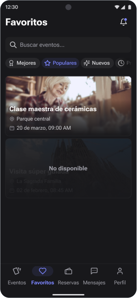 Activa is an app designed to reduce the loneliness of Older Adults by helping them find events and activities where they can meet people with similar interests. It was done as part of my group Master’s thesis, where the objective was to create a project that used AI to combat loneliness in older adults, and our research led us to this solution, that takes into account the different worries older adults have towards both technology and socialization, respecting the complexity of loneliness as an issue, but still offering a tool for people to confront it.